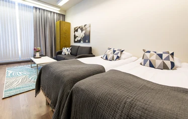 Hotel Viikinhovi is a great base for enjoying Keuruu's unique hiking nature and cultural attractions. Walking and cycling trails start from the courtyard, and illuminated ski trails from the surrounding area take you to the peace and quiet of authentic Finnish nature. The camping experience is guaranteed for everyone, as the nature trails. The nearby pavilion and the beach are also accessible during the thaw, for example with a big wheel pushchair, electric wheelchair or wheelchair scooter. For more sporting challenges, there is a top-level competition centre nearby and ski trails in perfect condition for more demanding training. Indeed, the former garrison area in the vicinity has provided a wide range of fitness facilities for soldiers and athletes for decades.